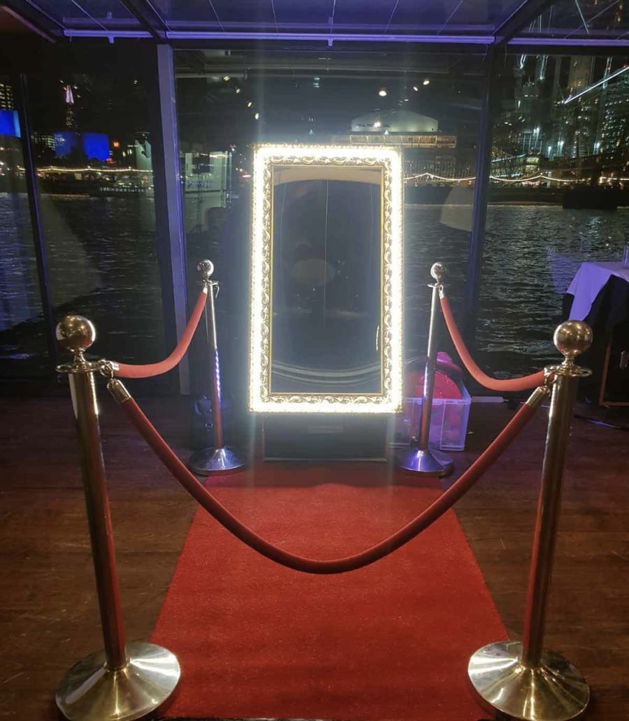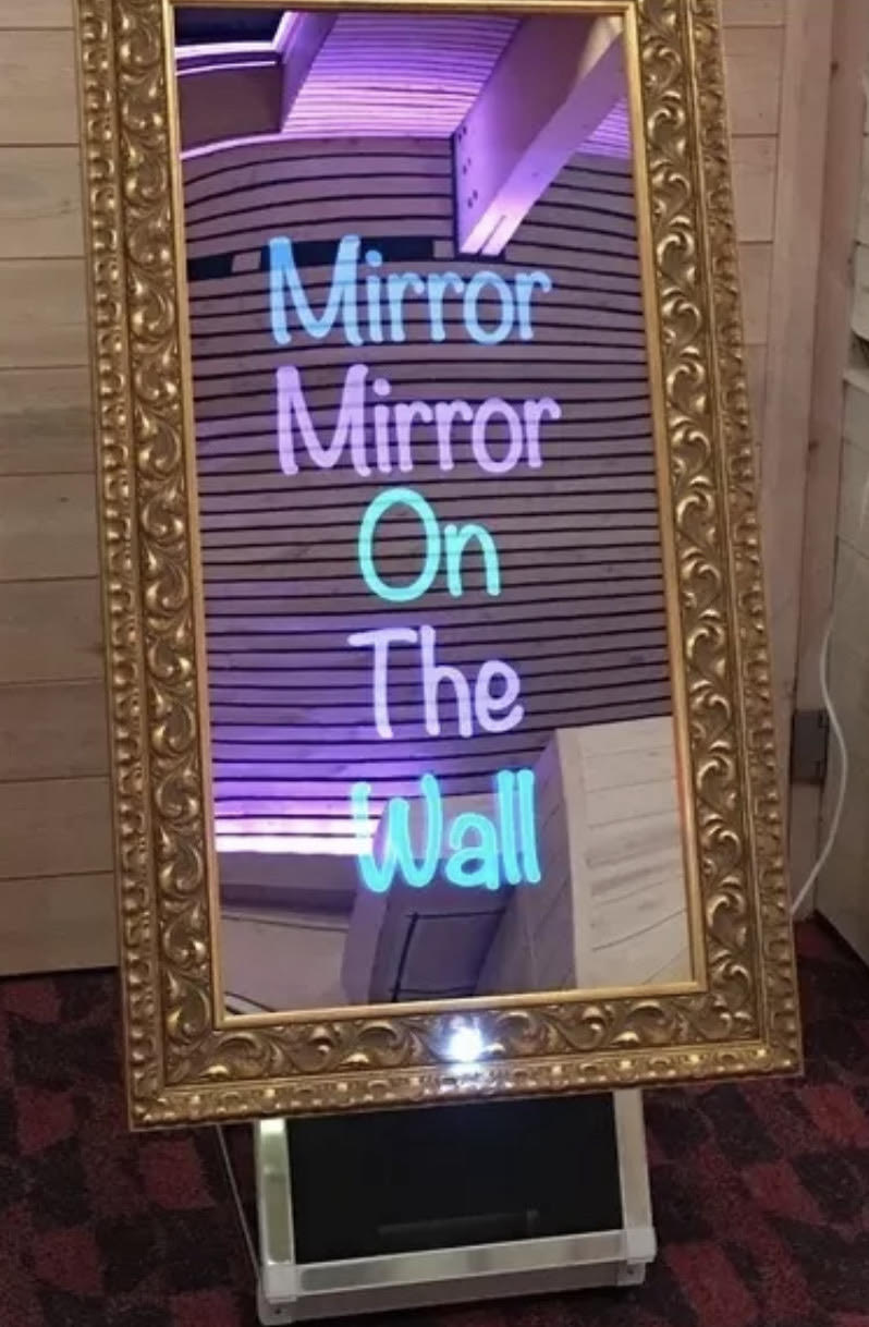 Touch the mirror to start, strike a pose while the mirror interacts with you & prompts you to smile for your next picture. At the end of your photo session you can sign your name or a message on the screen which then appears on the bottom of your prints. You can also upload your pictures to social media.